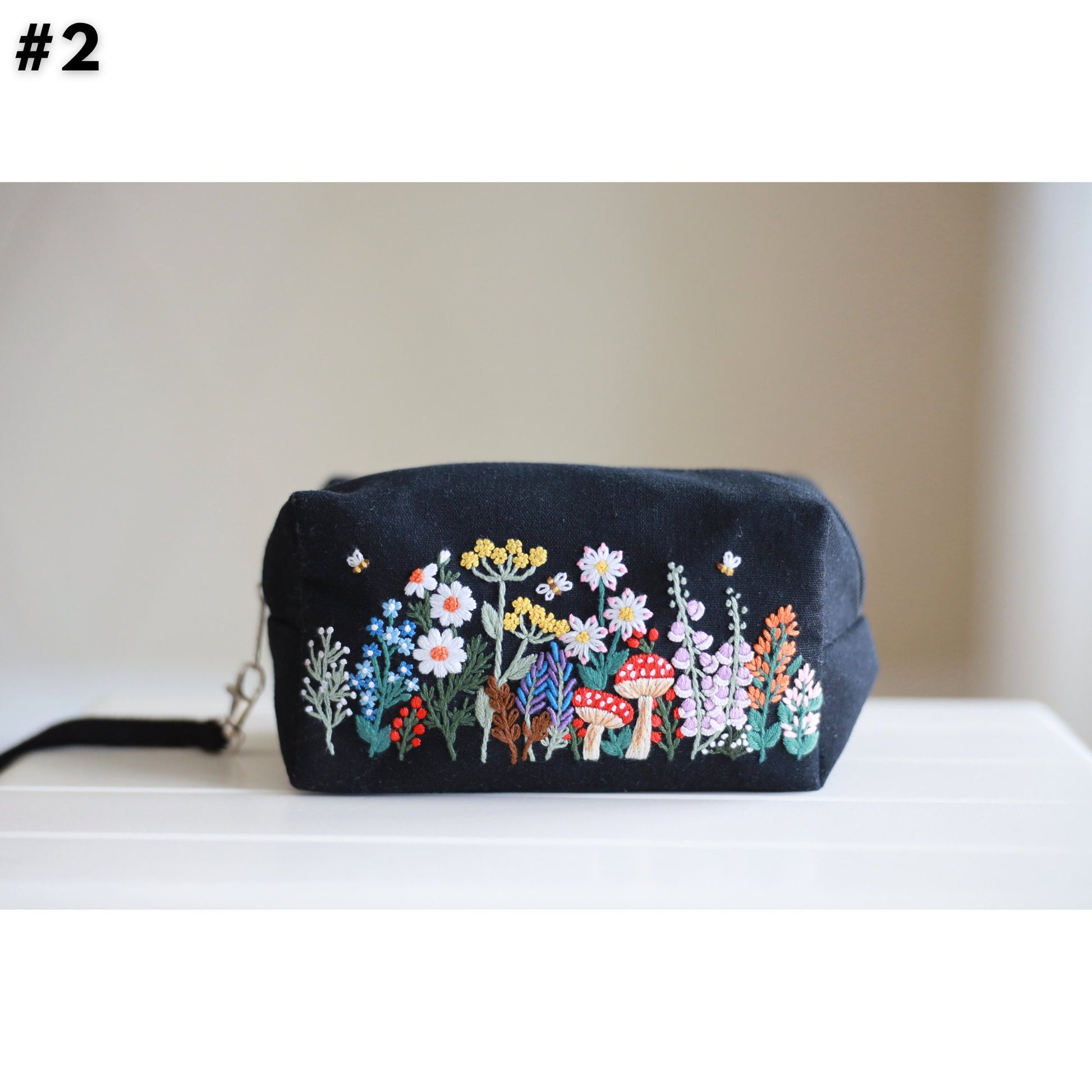 Hand Embroidered Makeup Bag with Flower Embroidery