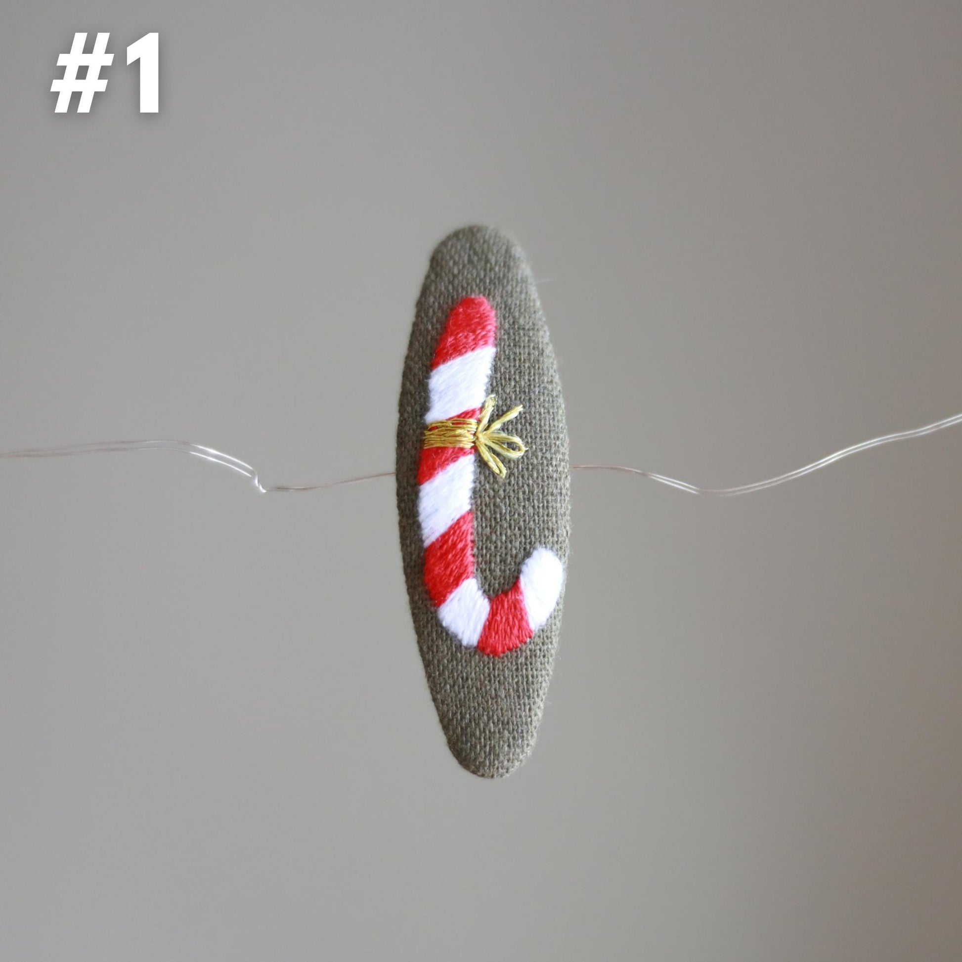โจ. Each clip is carefully stitched on red, white, or green linen with Christmas-inspired designs like candy canes, presents, and decorated trees. Perfect as a subtle holiday accessory for yourself or a thoughtful stocking stuffer for someone special. These clips bring a touch of festive magic to every outfit.