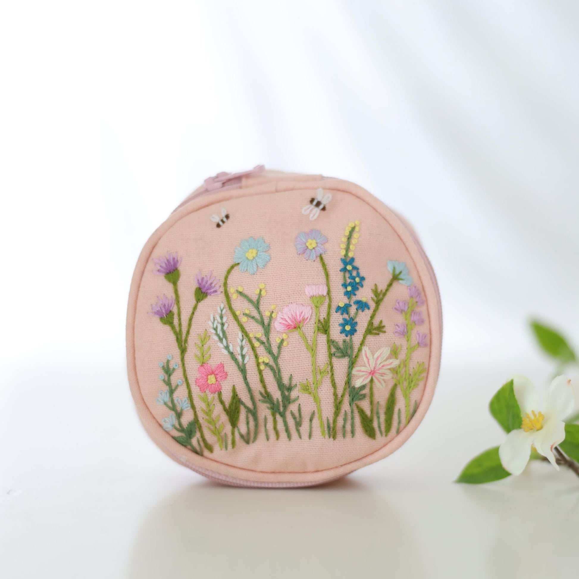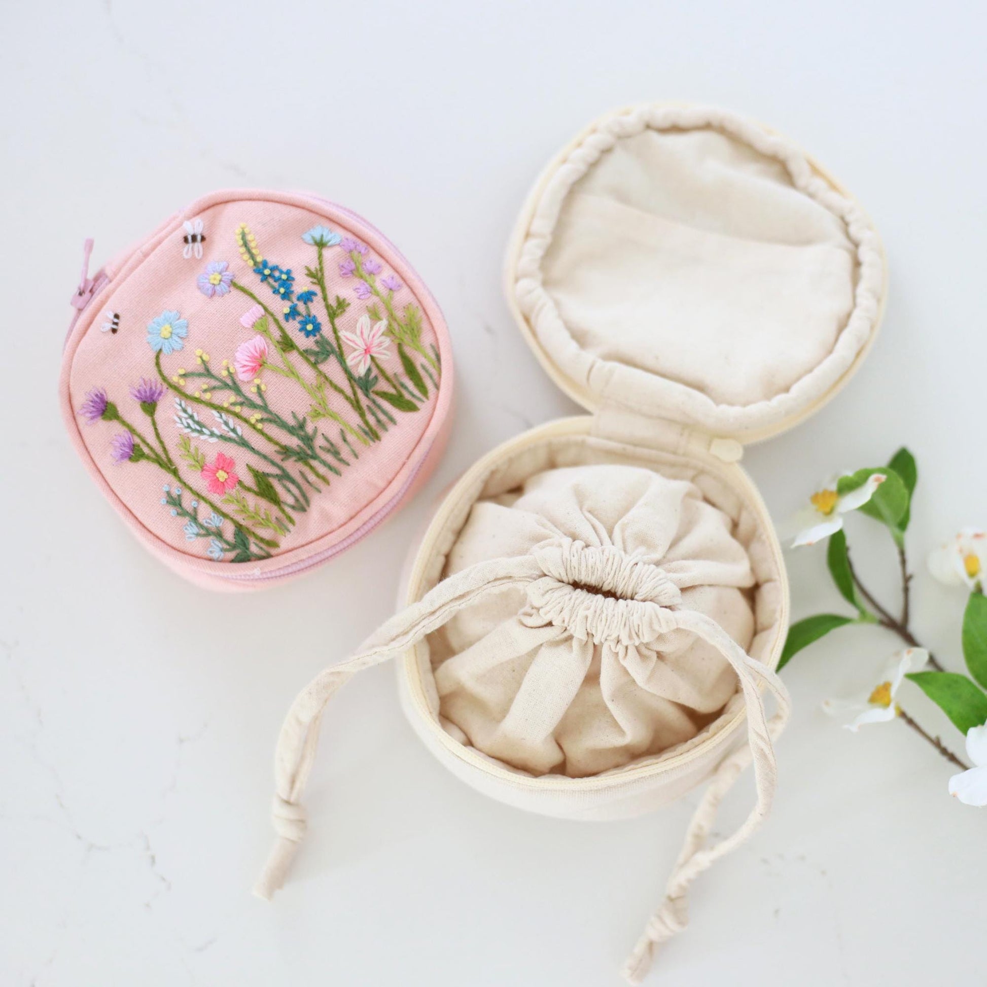 Whether at home or on the go, this embroidered jewelry pouch is the sweetest way to keep your keepsakes safe.