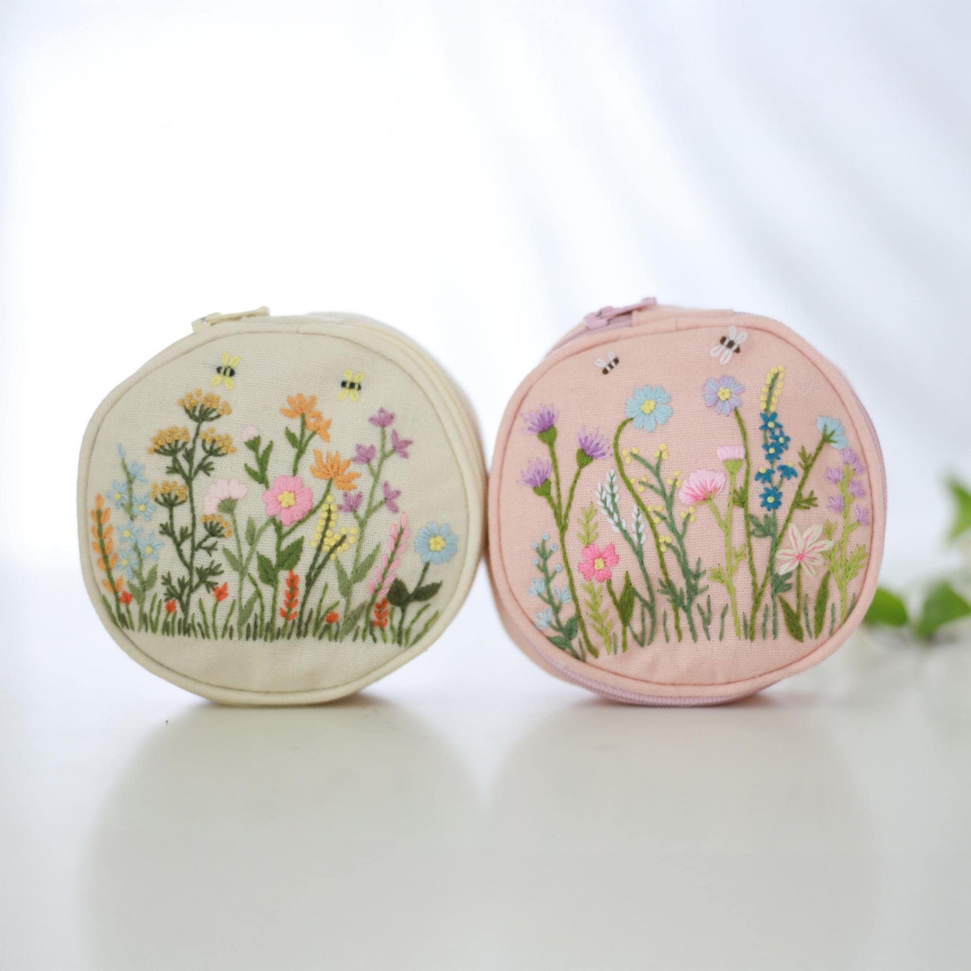 Keep your treasures safe in style with this hand-embroidered linen jewelry pouch, available in two charming colors. Each pouch features delicate floral embroidery on the front, a secure zip-around closure, and a drawstring inner pouch to keep your jewelry safe and secured. Thoughtfully designed with small pockets for earrings, charms, or rings, it's both practical and beautiful.