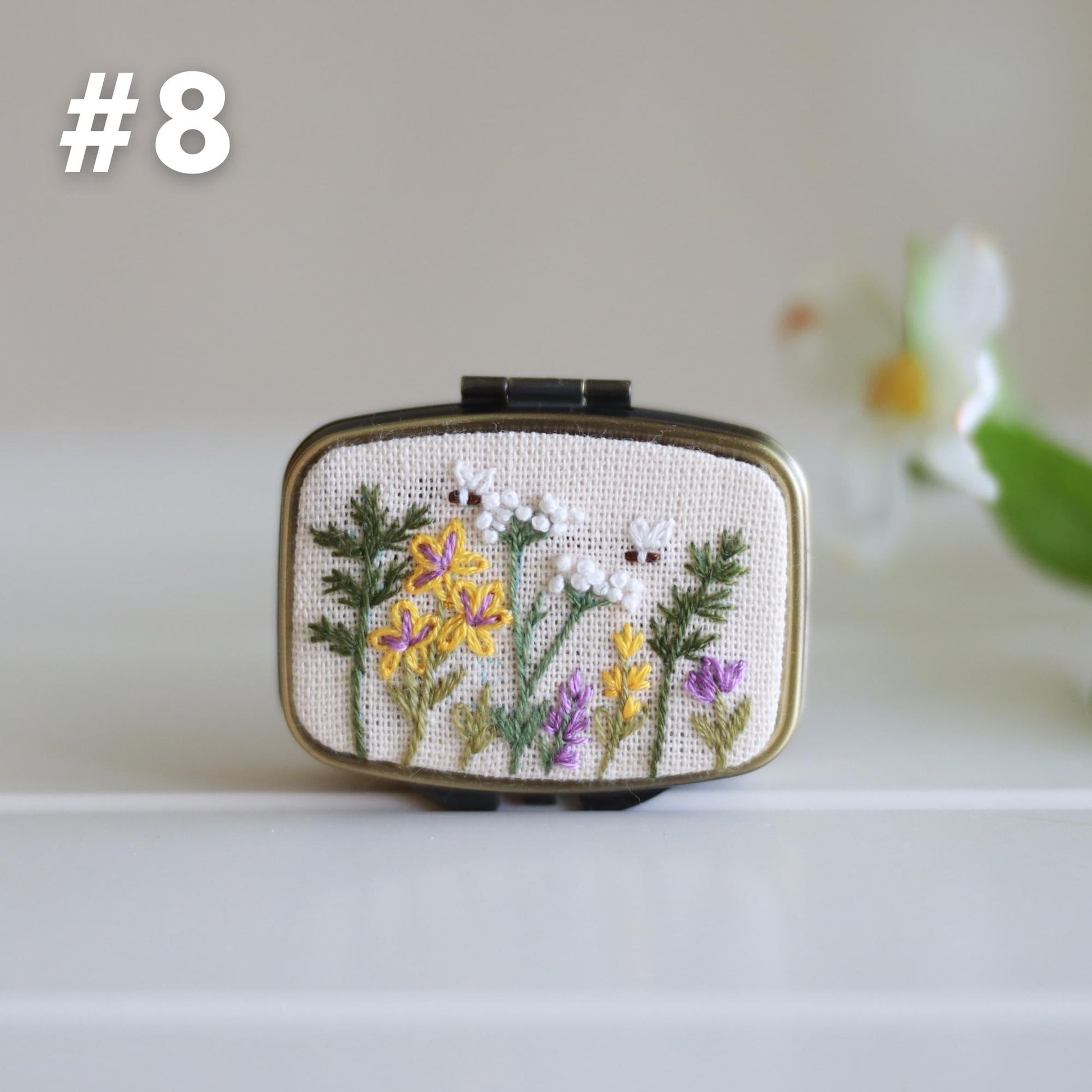 Mini Floral Embroidered Jewelry Box with Mirror, Handcrafted Linen Jewelry Storage Box, Cute Vintage Gift, Bridesmaid Gift, Pill Box